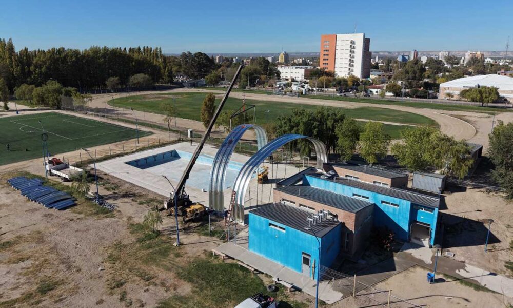 Se trata de la instalación de un domo geodésico de aluminio sobre uno de los tanques de la estación de bombeo.