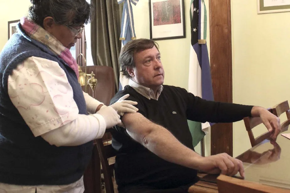 También se aplica la vacuna a los integrantes de los distintos organismos públicos. En este marco, hoy el gobernador Alberto Weretilneck recibió la dosis correspondiente por parte del personal sanitario.
