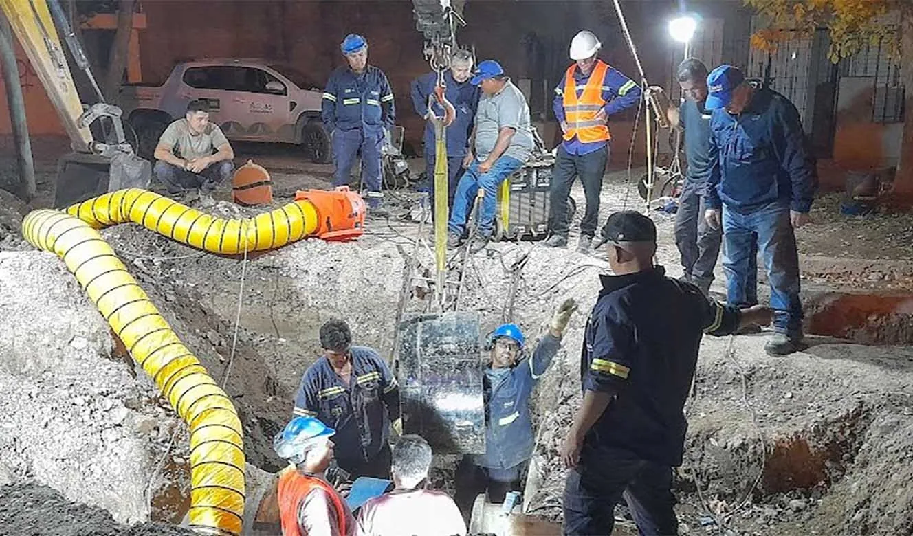 Tras 16 horas de trabajo ininterrumpido, finalizaron el arreglo en el acueducto de la calle Güemes