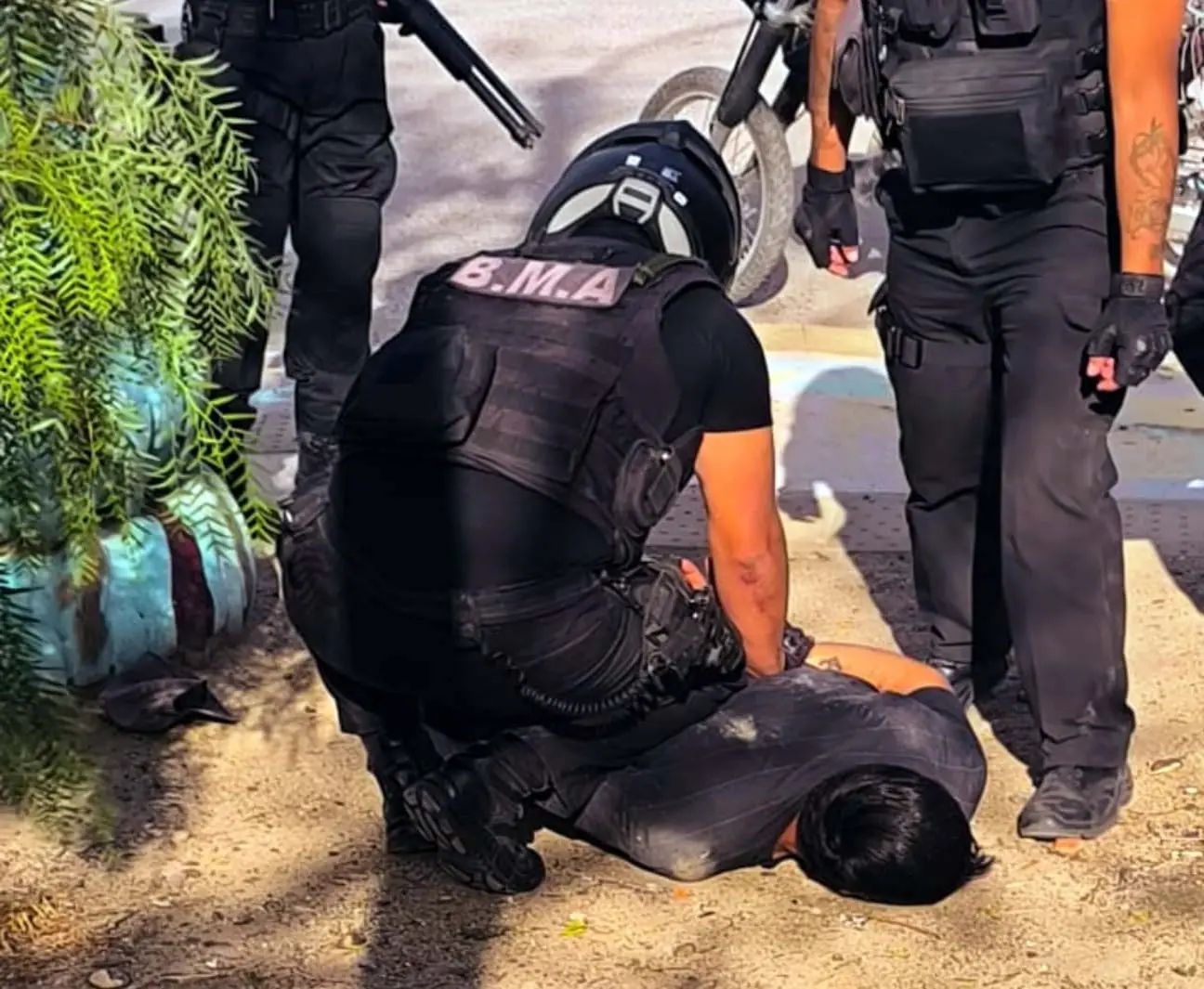 Sin perder tiempo, el personal policial llegó al lugar y entrevistó a la dueña del vehículo, quien aportó una descripción muy precisa: vestía pantalón oscuro, remera negra con rayas, gorra gris y zapatillas negras con blanco. Ese detalle fue clave. Con esos datos, se desplegó un rastrillaje inmediato por las calles internas del barrio.