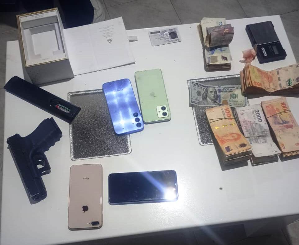 En calle Santiago del Estero al 2000, efectivos de la Comisaría 21° y del COER incautaron una réplica de Glock 19, cocaína confirmada mediante narco test, una balanza de precisión y más de 1 millón de pesos en efectivo.