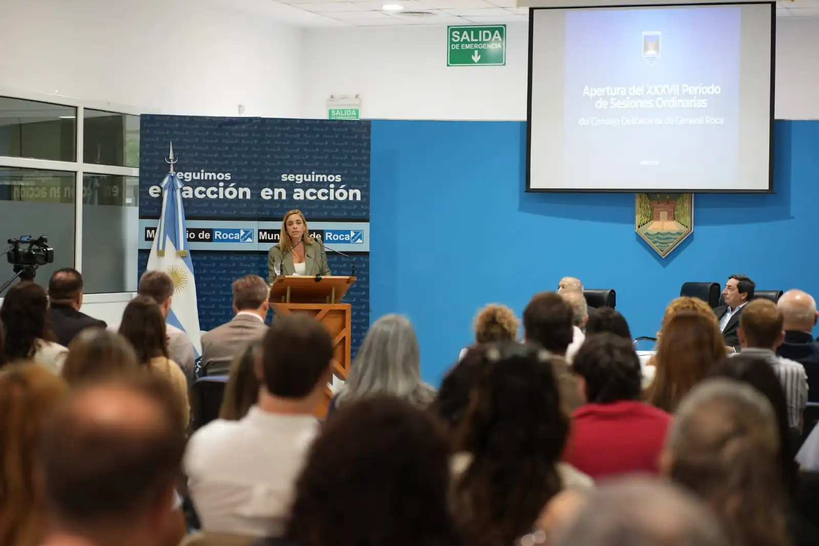 La intendenta María Emilia Soria encabezó este viernes la XXXVII Apertura de Sesiones Ordinarias del Concejo Deliberante de General Roca, donde presentó los principales lineamientos de gestión para este año y anunció una inversión superior a 34.699 millones de pesos en obra pública.