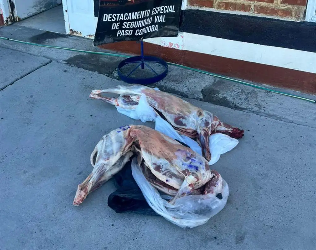 Uno de los procedimientos se desarrolló en el sector de Paso Córdoba, donde efectivos policiales detuvieron la marcha de un vehículo Toyota Hiace, color blanco, que se desplazaba desde Los Menucos hacia General Roca. Al identificar al conductor, un hombre de 48 años, se constató que transportaba debajo de los asientos dos ovinos faenados, sin cadena de frío ni documentación que acreditara su procedencia.