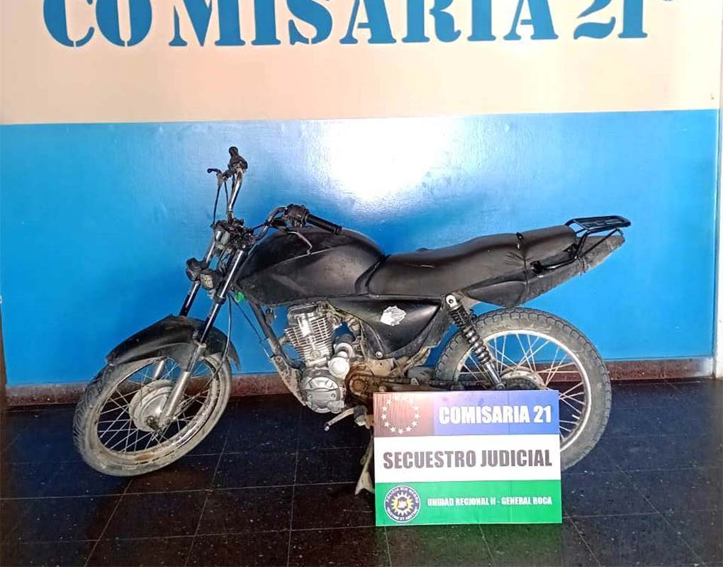 En el marco de los operativos de prevención dispuestos por la Unidad Regional 2°, efectivos de la Comisaría 21° de General Roca realizaron un procedimiento que culminó con el secuestro de una motocicleta que presentaba diversas irregularidades.