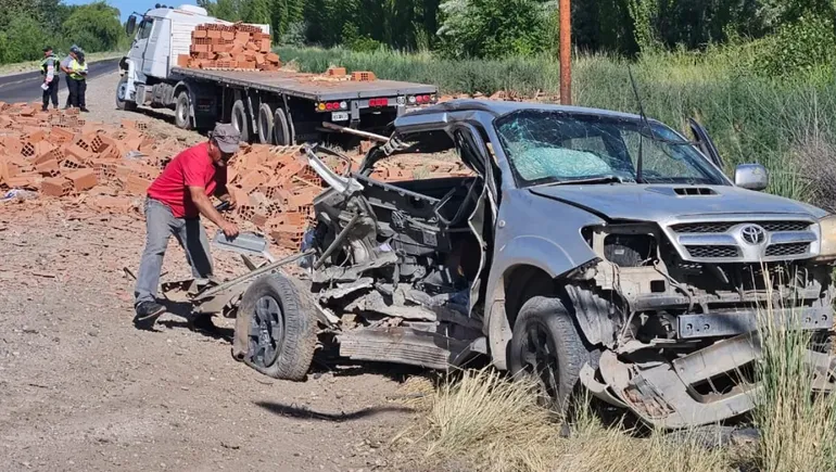 A la altura de Allen, se acercaron a un camión Mercedes Benz que transportaba ladrillos en su acoplado, sin compuerta. En el momento en que ambos vehículos coincidieron en la marcha, el material comenzó a caer de forma abrupta. Los ladrillos quedaron esparcidos a lo largo y ancho de la ruta, y una nube de polvo impidió la visibilidad.