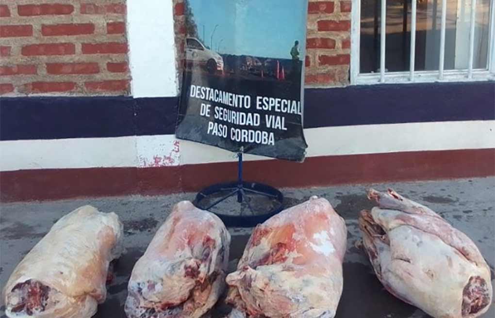 Los efectivos hallaron cuatro animales faenados en el asiento trasero, transportados sin cadena de frío y sin marca o señal que acreditara su procedencia.