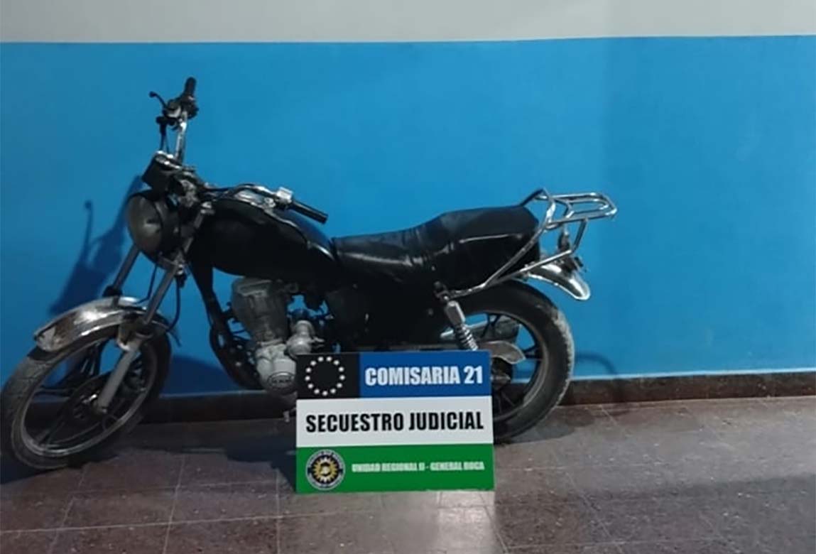 Durante recorridas de prevención realizadas por personal de la Comisaría 21° de Roca alrededor de las 3 de la mañana de hoy (10/01), los uniformados secuestraron una motocicleta que registraba pedido de secuestro activo por el delito de robo, en la zona norte de General Roca.