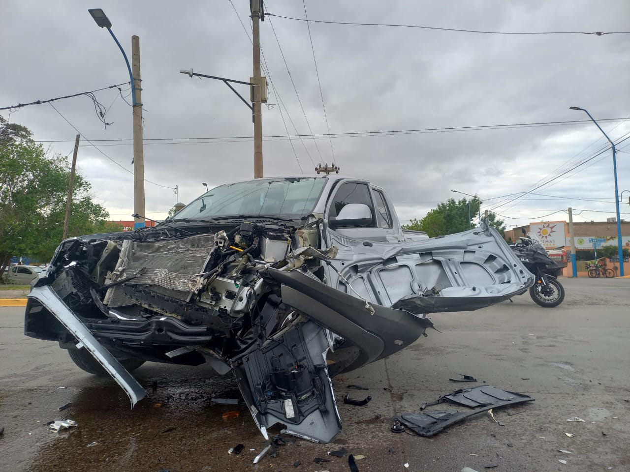 Según informó la Agencia de Noticias Roca (ANR), el camión habría tomado la calle en contramano, lo que provocó el impacto frontal con la Amarok. El golpe fue violento: la camioneta quedó con graves daños en el frente y el tránsito permaneció interrumpido varios minutos.