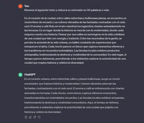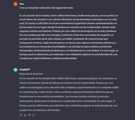 Aquí hay una imagen que muestra cómo ChatGPT resume el texto con diferentes indicaciones.