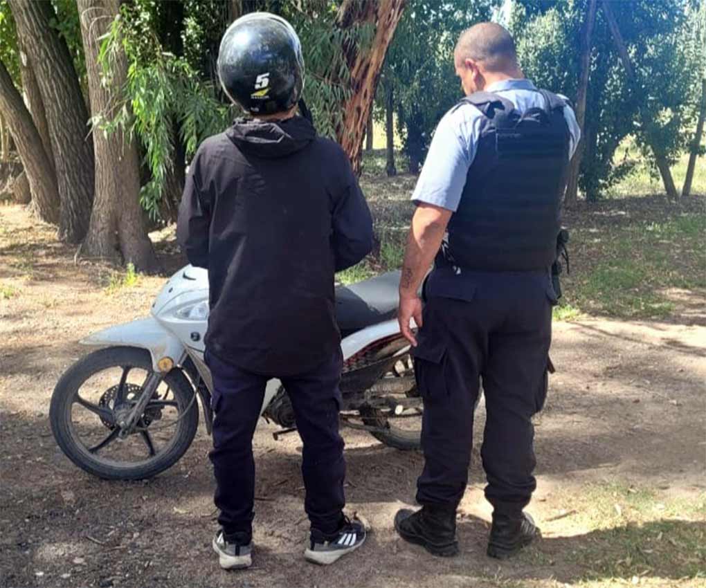 En el procedimiento también se secuestró una motocicleta Zanella DUE 110 cc, color blanca, sin patente visible, y una bolsa con 15,11 kilos de manzanas.
