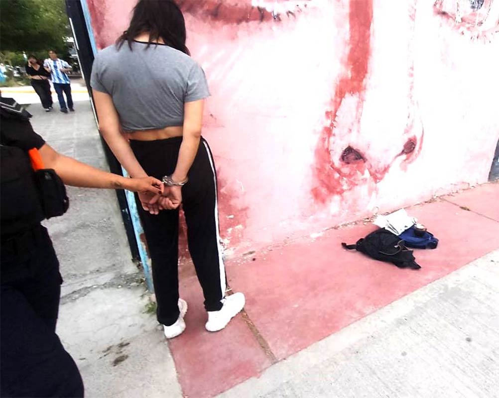 Ante la alerta, la Policía desplegó un operativo cerrojo logrando minutos después interceptar a la mujer en la intersección de Avenida Roca y Gadano. Entre sus pertenencias, los uniformados hallaron un mate imperial de calabaza con virola metálica y dos bombillas, sustraídos del comercio.