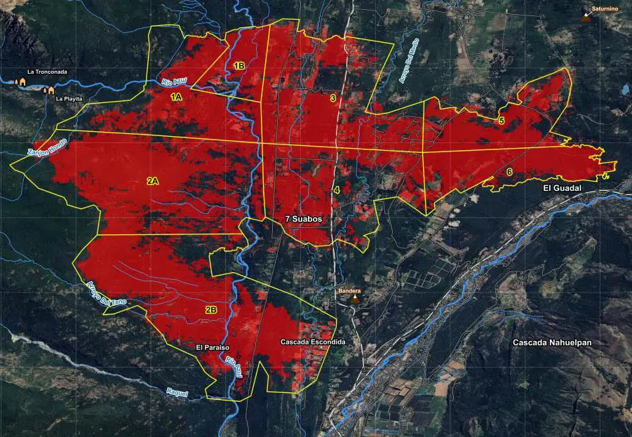 - Servicio Nacional de Manejo del Fuego 46 combatientes con herramientas manuales.