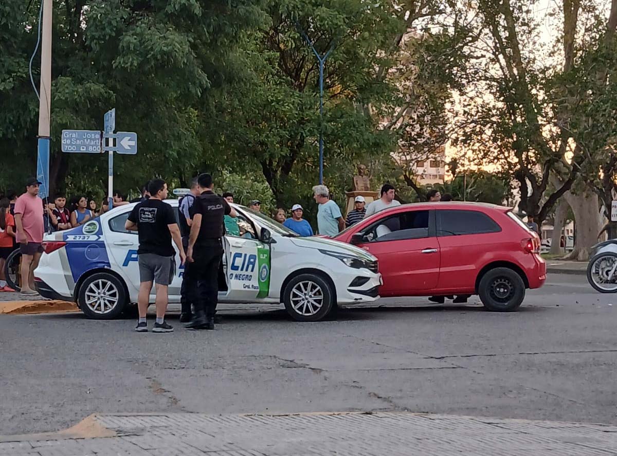 El siniestro ocurrió alrededor de las 20.45 horas, cuando un Volkswagen Gol conducido por una mujer joven circulaba por Avenida Roca en sentido norte-sur. El vehículo fue embestido por un patrullero dependiente de la Comisaría 3° que avanzaba por calle San Martín.