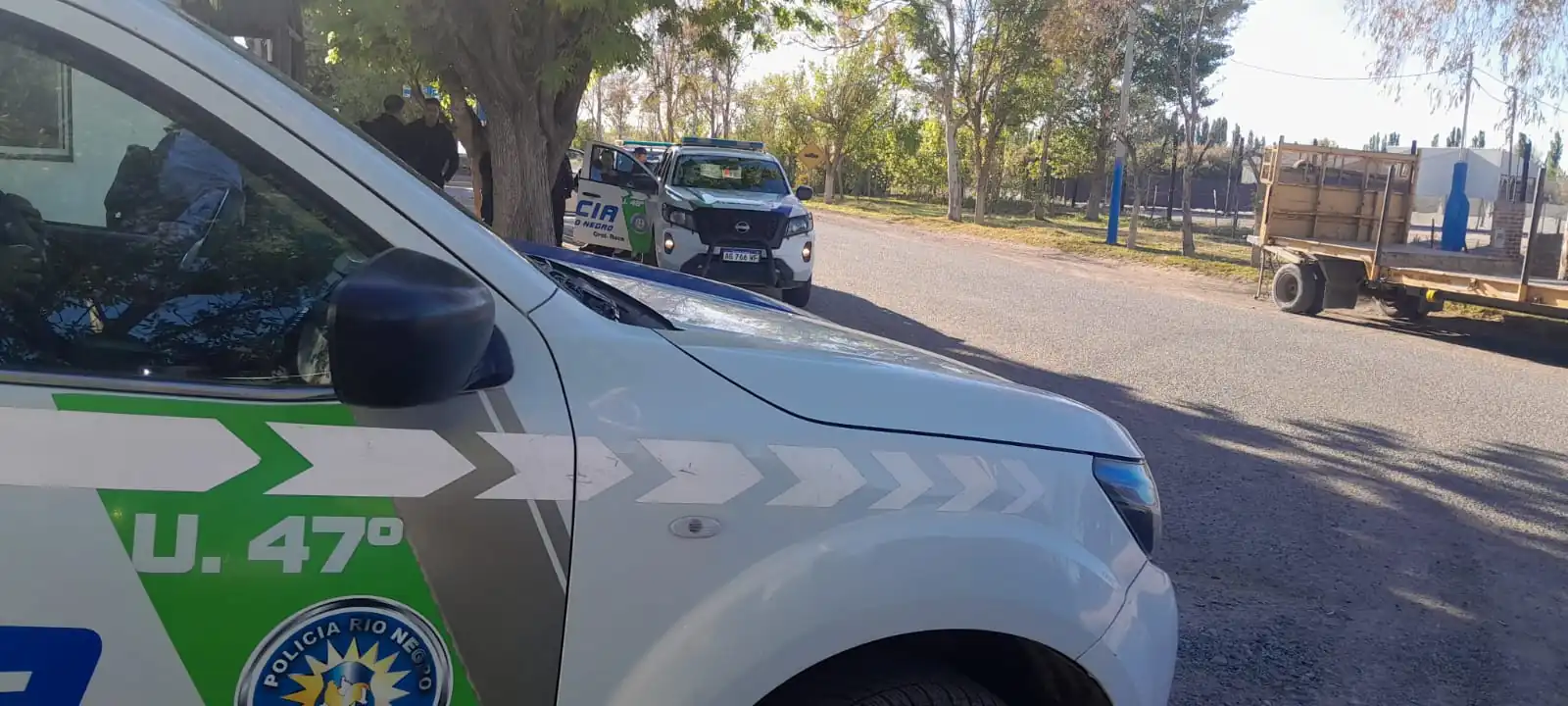 Minutos más tarde, alrededor de las 23.30, se produjo el segundo episodio en el barrio Alta Barda, cuando personal policial intentó identificar a los sospechosos. Al advertir la presencia de los uniformados, los individuos intentaron escapar hasta un predio lindante al aeropuerto local. Allí, uno de los imputados descendió del rodado y atacó con un cuchillo a un efectivo, causándole una herida profunda en un antebrazo. Al intervenir otro policía para auxiliar a su compañero, también resultó lesionado y fue posteriormente embestido por la motocicleta conducida por el segundo agresor, lo que provocó que cayera al suelo y perdiera el conocimiento.