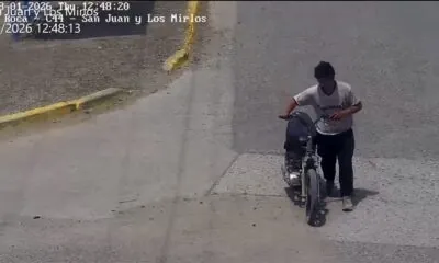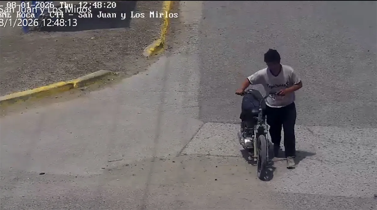 El hecho ocurrió en pleno mediodía, cuando desde una de las cámaras ubicadas en una esquina de San Juan y Los Mirlos, en el norte de la ciudad, se observó a un hombre adulto que avanzaba por la calle llevando una moto negra a la par. Además, el vehículo presentaba faltantes visibles de plásticos, un detalle que encendió las alertas y activó el protocolo preventivo.