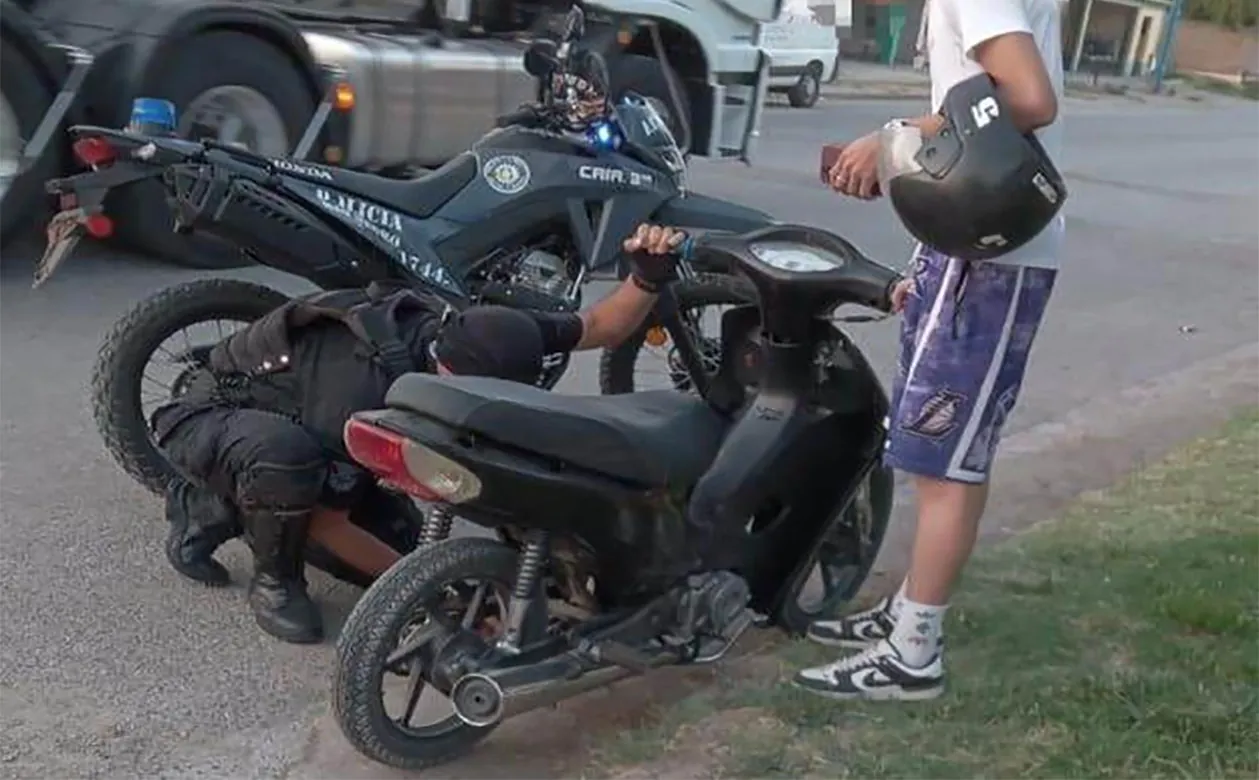 El conductor fue identificado como un joven de 22 años, domiciliado en esta ciudad, quien se desplazaba en una motocicleta Motomel 110 cc que no contaba con chapa patente colocada.