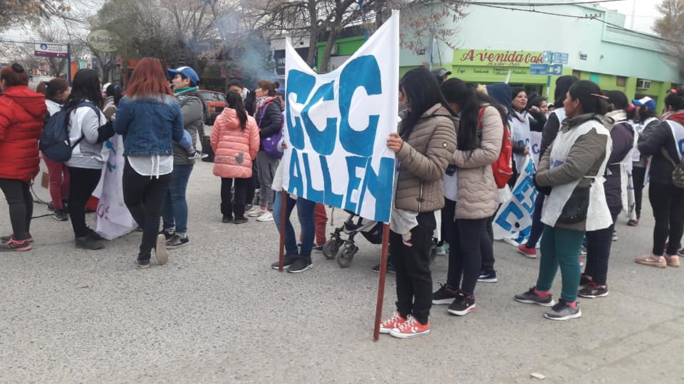 En total, más de 200 integrantes de la CCC, CTEP y Barrios de Pie se manifiestan en pleno centro de General Roca desde las 10 de la mañana. Concentraron y luego marcharon por las arterias más céntricas para luego retornar a la esquina tradicional de Avenida Roca y Tucumán para comenzar a preparar las ollas populares.